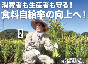 消費者を守り、生産者も守るため、農地直接支払の実施や兼業、小規模農家も応援し、食糧の安全を守り自給率を向上させます!